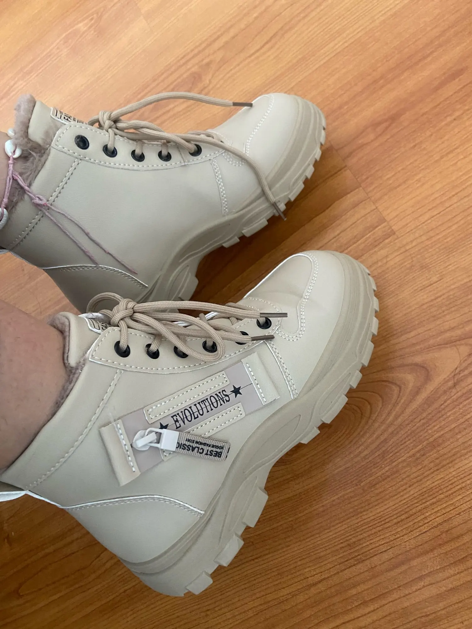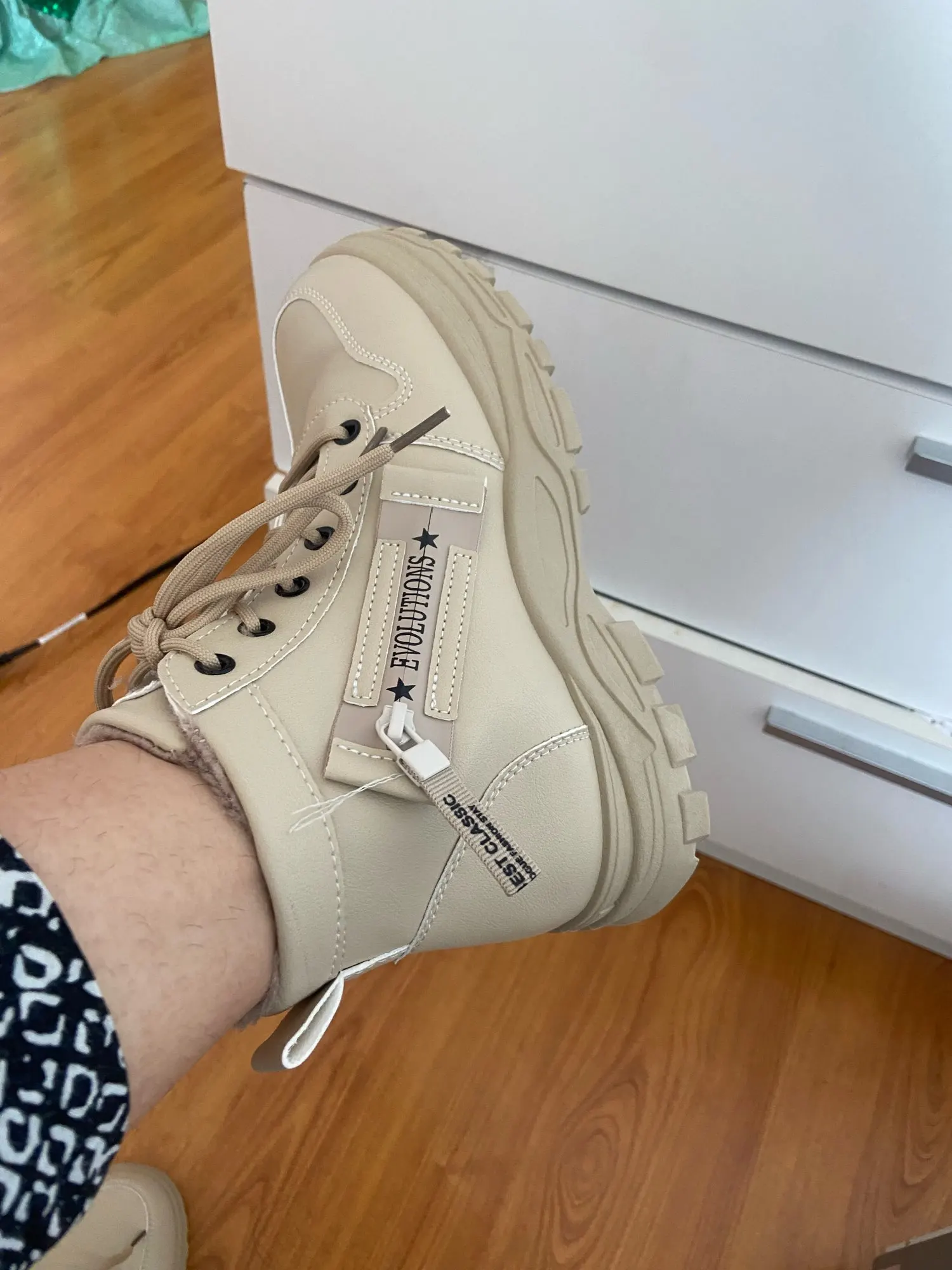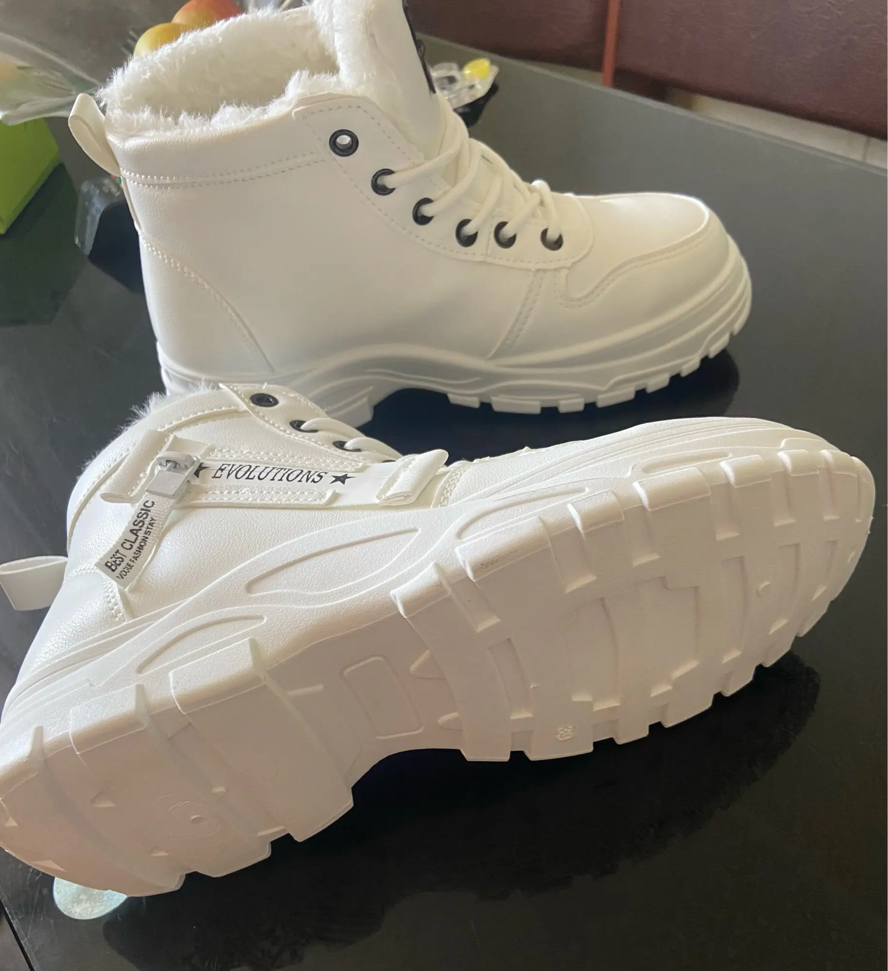 Diese Damen Winter-Sneaker kombinieren Stil und Funktionalität. Die warmen High-Top Stiefel bieten perfekten Schutz vor Kälte und halten deine Füße auch an den kältesten Tagen angenehm warm. Mit einem modernen Plateau-Design bieten sie nicht nur Komfort, sondern auch extra Höhe. Die robusten und strapazierfähigen Materialien sorgen für eine lange Lebensdauer, während die bequeme Passform und die rutschfeste Sohle für sicheren Halt sorgen. Perfekt für den Alltag, ob beim Spazieren gehen, Einkaufen oder einfach für den gemütlichen Winter-Look.