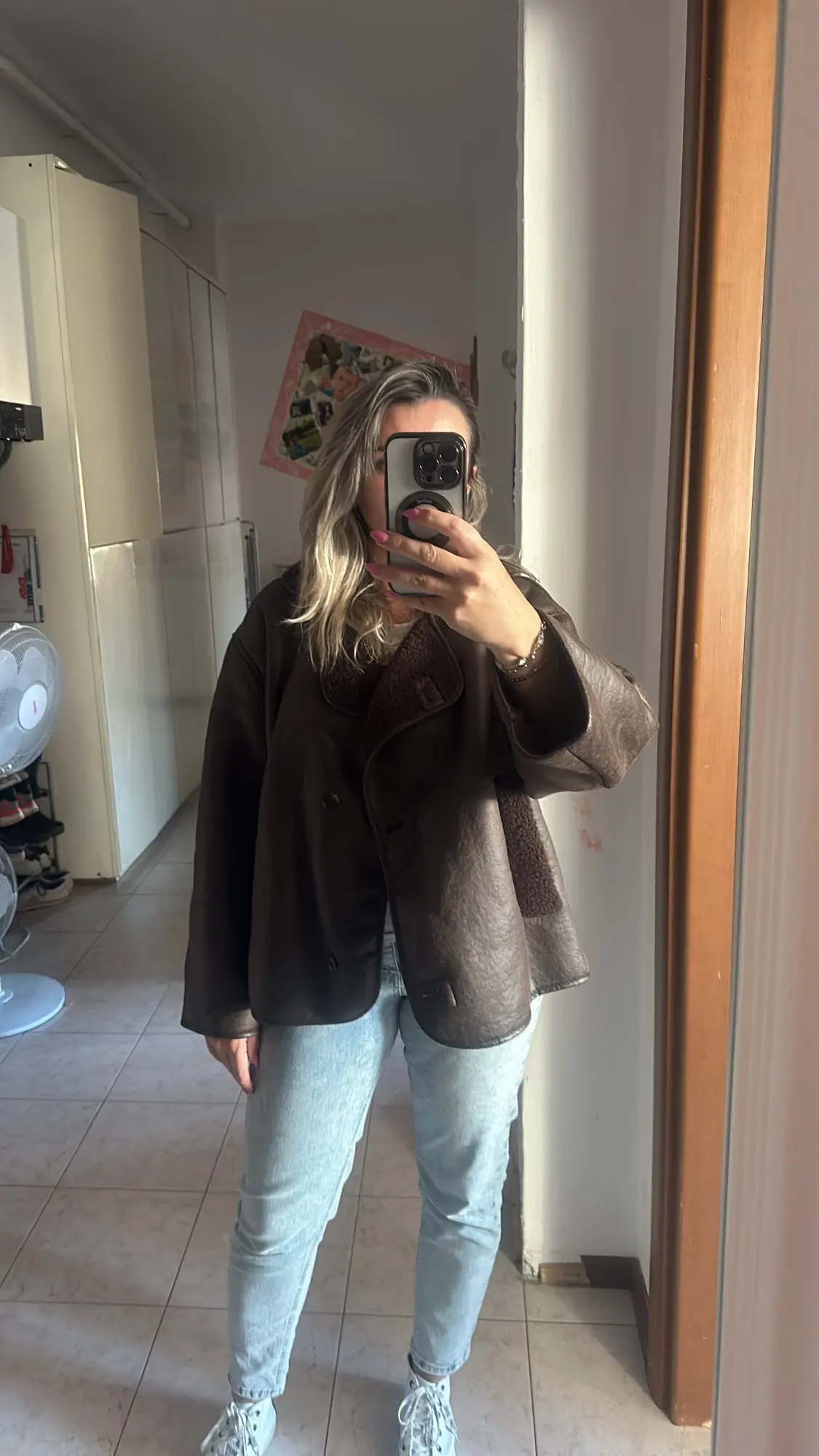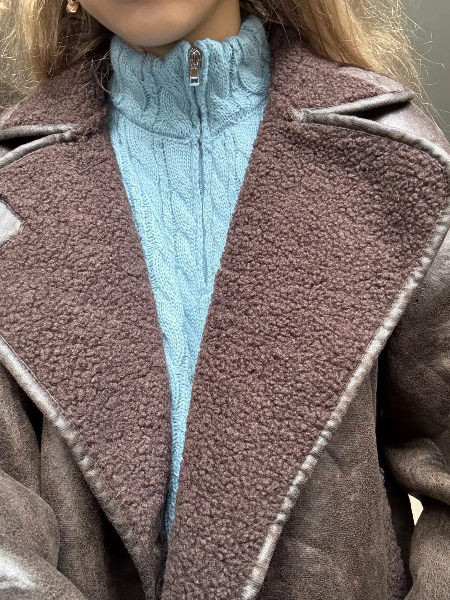 Flauschiger Mantel - Kunstlederjacke mit Wolle