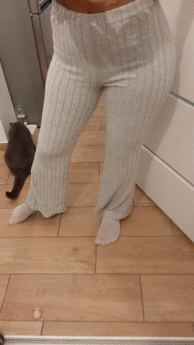 Weicher Anzug, ein wenig glänzend, für den Frühling ist es kalt genau richtig, es wird ein paar Mal für den Ausgang sein, und dann für das Haus super weich, empfehle ich. L nahm meine Hüfte 105 cm